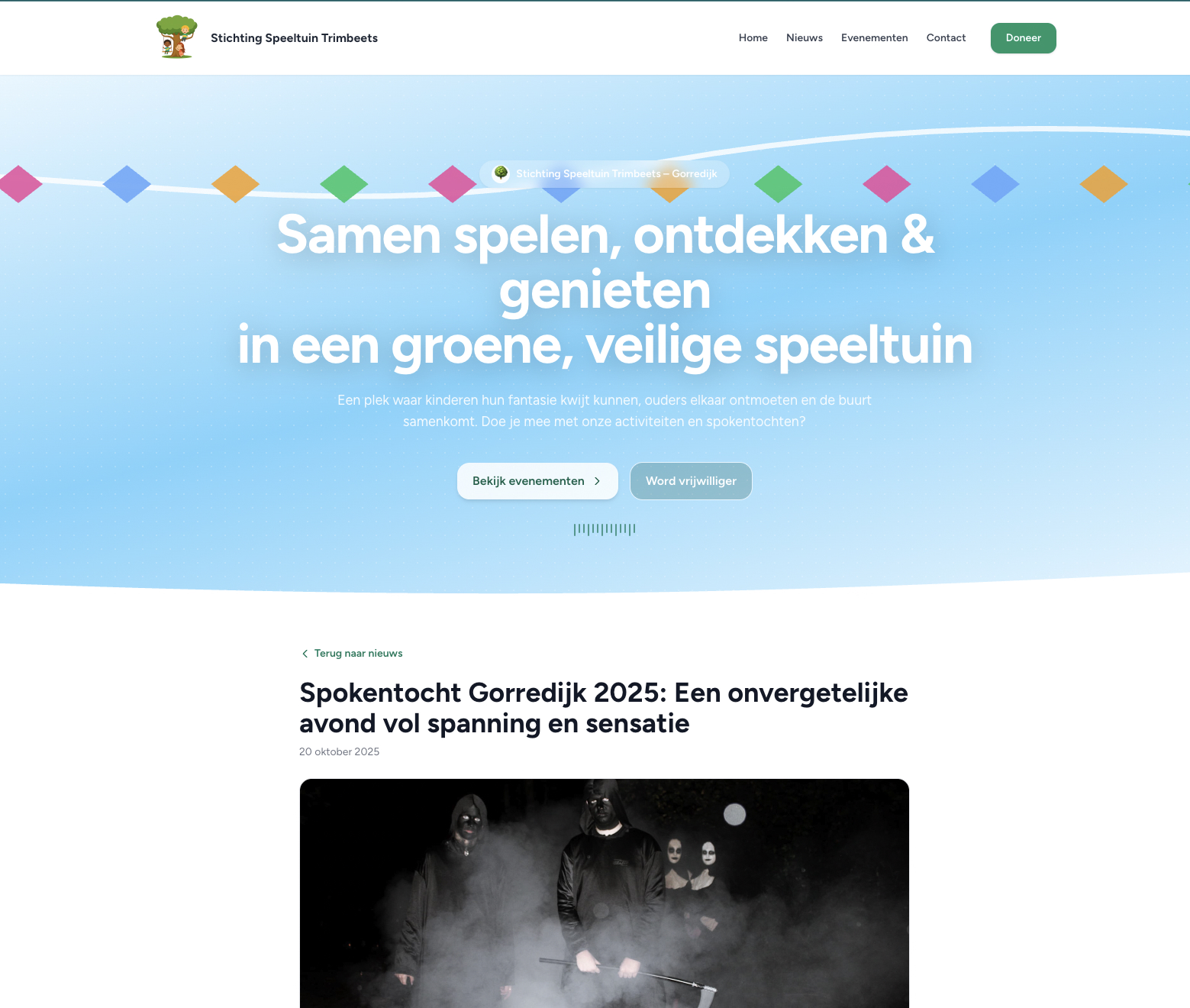 Speeltuin Trimbeets beschikt nu over een professioneel platform dat de hele community bereikt. De Spokentocht 2025 trok meer dan 250 deelnemers en 60 acteurs - mede dankzij de online promotie. Het donatiesysteem heeft bijgedragen aan nieuwe speeltoestellen en het onderhoud van de speeltuin. De website versterkt de band tussen de stichting en de buurt, en maakt het eenvoudiger dan ooit om vrijwilligers te werven en evenementen te organiseren.
